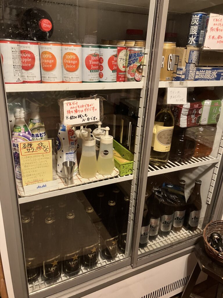 ●2階冷蔵庫にある飲み物は、基本的に勝手に飲み放題となってますのでご自由にお飲みください。但し、飲み残しのないように気を付けて下さい。飲み残しが多い場合別途料金頂く場合がございます。