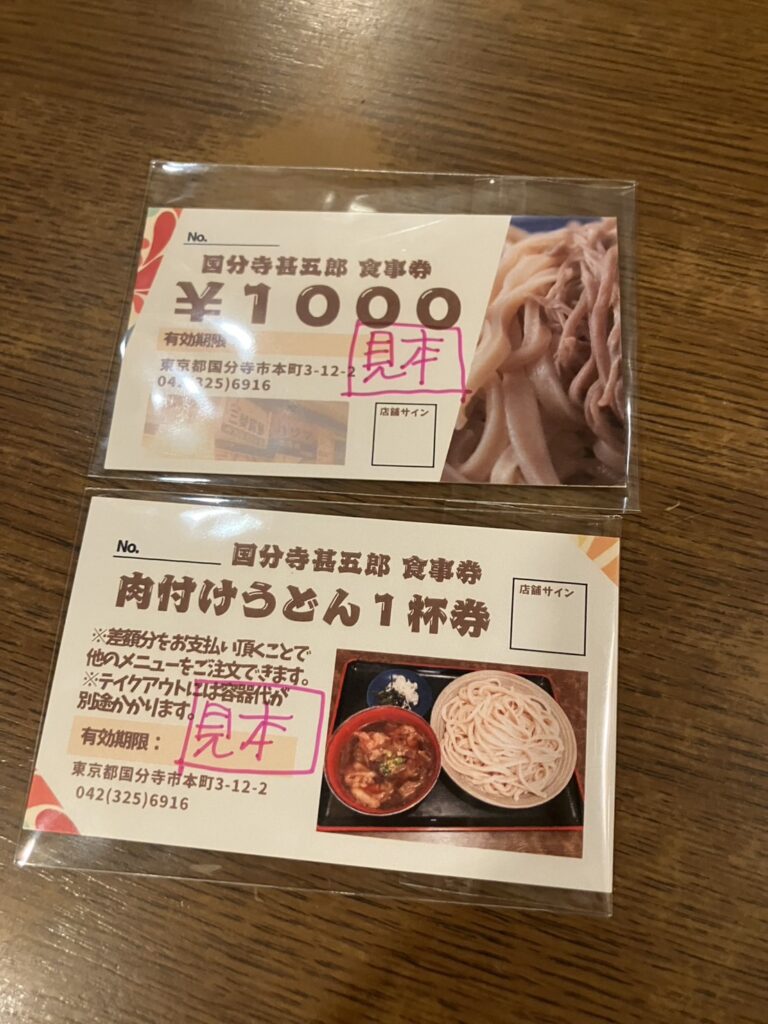 又、国分寺甚五郎での食事券【2種類】もふるさと納税で取り扱いされています。