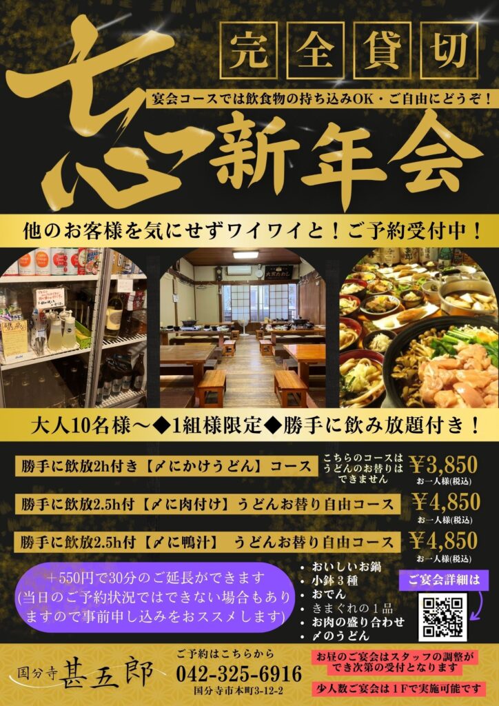 〆には自慢の武蔵野うどん・田舎蕎麦  国分寺甚五郎です